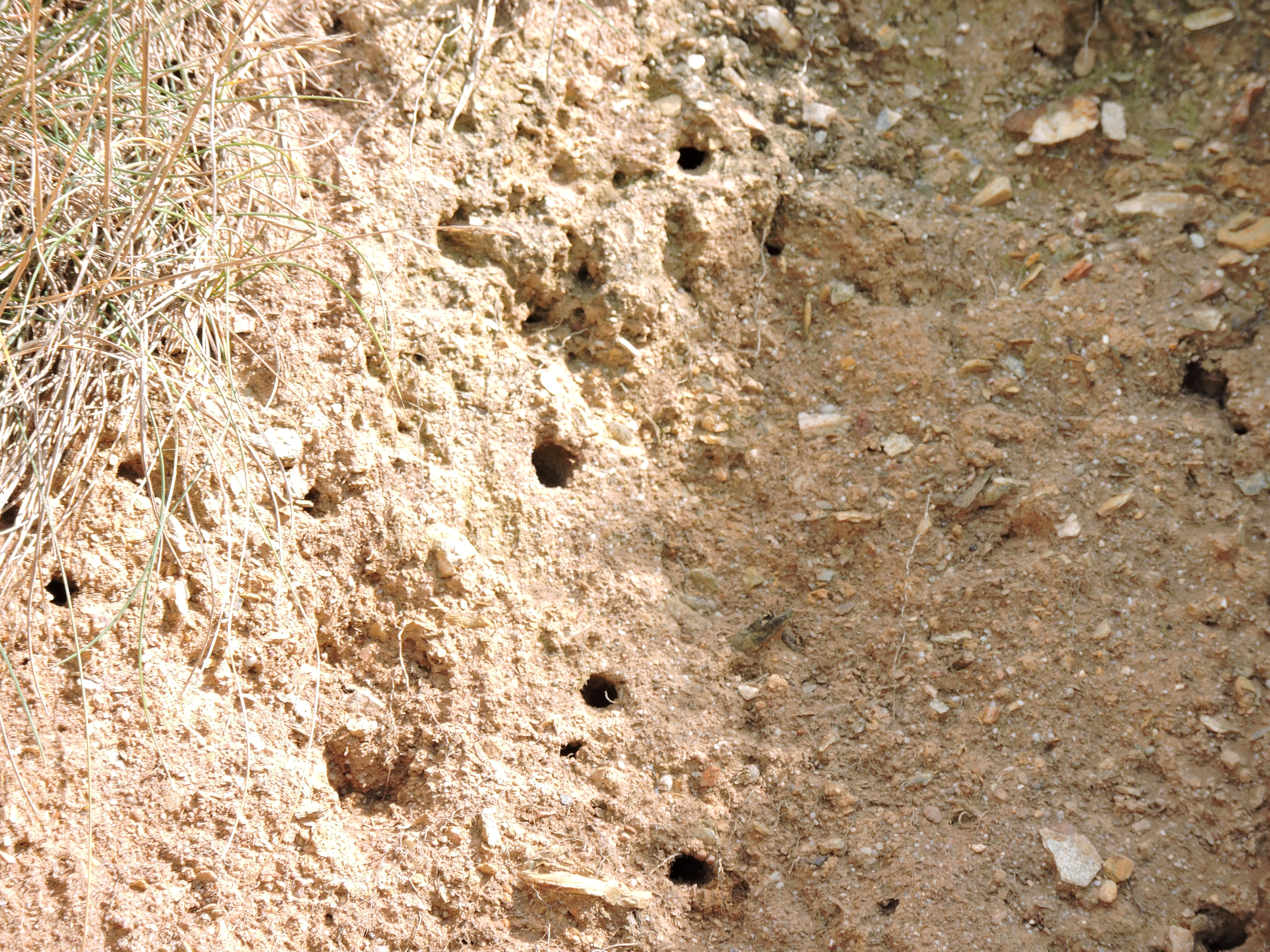 On the way back along the coast path from Loe Bar we noticed hundreds of tiny holes in the bank: